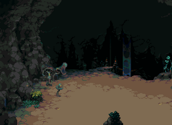 Each biome/area contains separated foreground, main scene, background and sky layers to enable having a moving mid-layer (clouds or mist) and parallax (Where applicable). There are also some bonus monster/encounter sprite included.